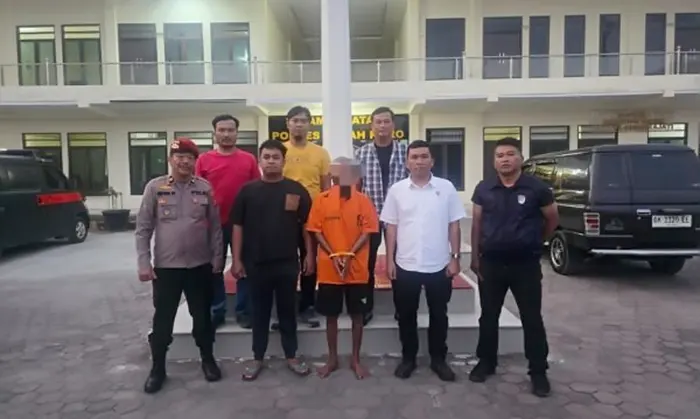 TS diamankan di Mapolres Tanah Karo, Rabu (28/1/2026), saat mendatangi kantor polisi untuk mengurus surat keterangan kematian adiknya.